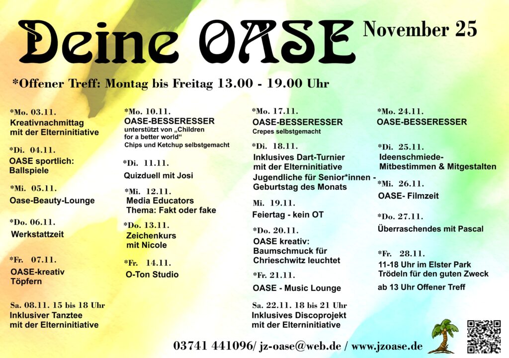 Im Jugendzentrum OASE gibt es unzählige Möglichkeiten, seine Freizeit aktiv zu gestalten, Freunde zu finden, sich einzubringen und mitzugestalten. Neue Ideen sind immer willkommen :O)